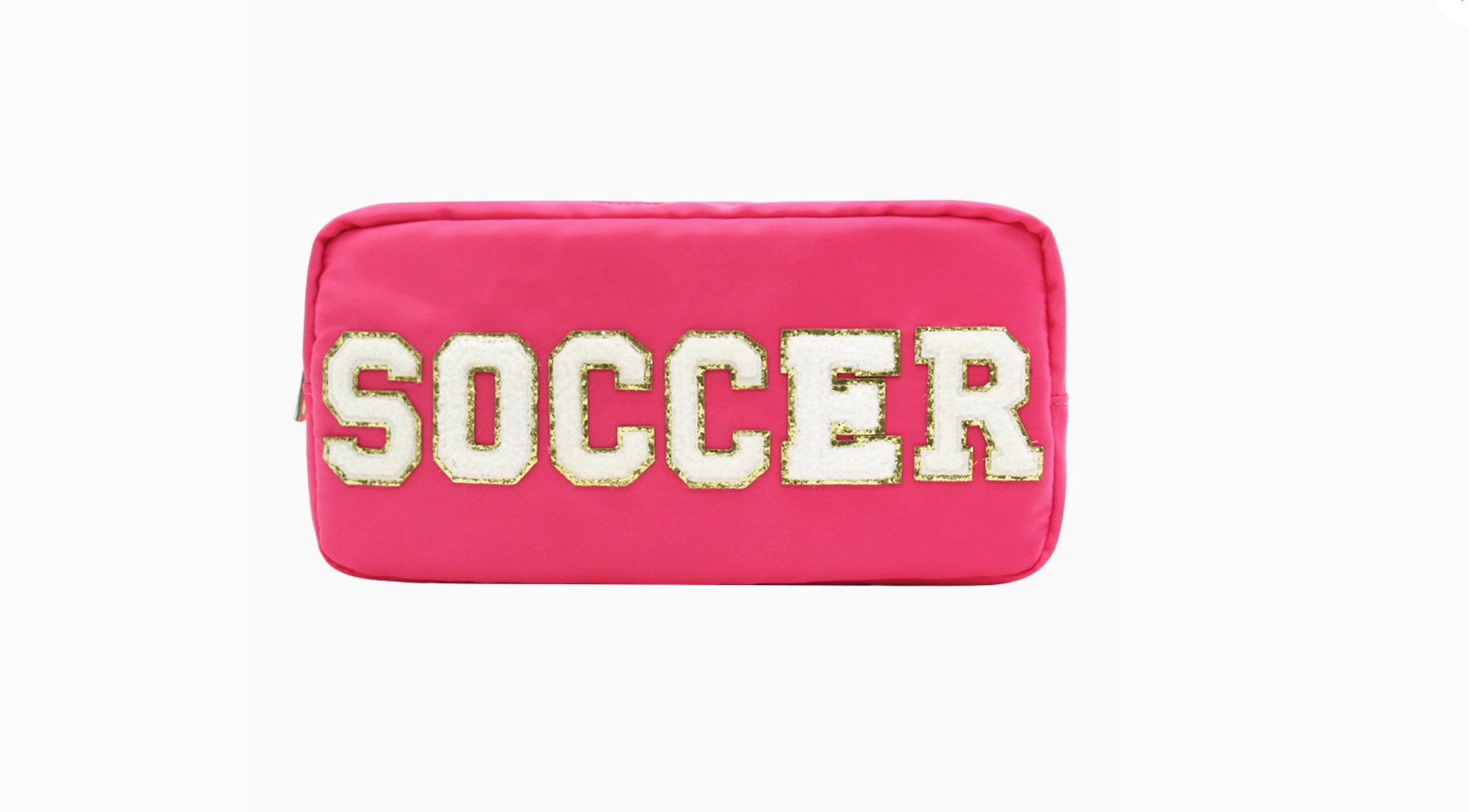 Discover the perfect blend of style and functionality with our Varsity Collection Nylon Cosmetic Bags. Available in a variety of vibrant colors and adorned with playful patches on the front, these bags let you express your unique personality. Whether you’re into DANCE, CAMP, IN MY ERA, GLAM, BEACH, SLAY, VACAY or SOCCER, there’s a bag for every passion.