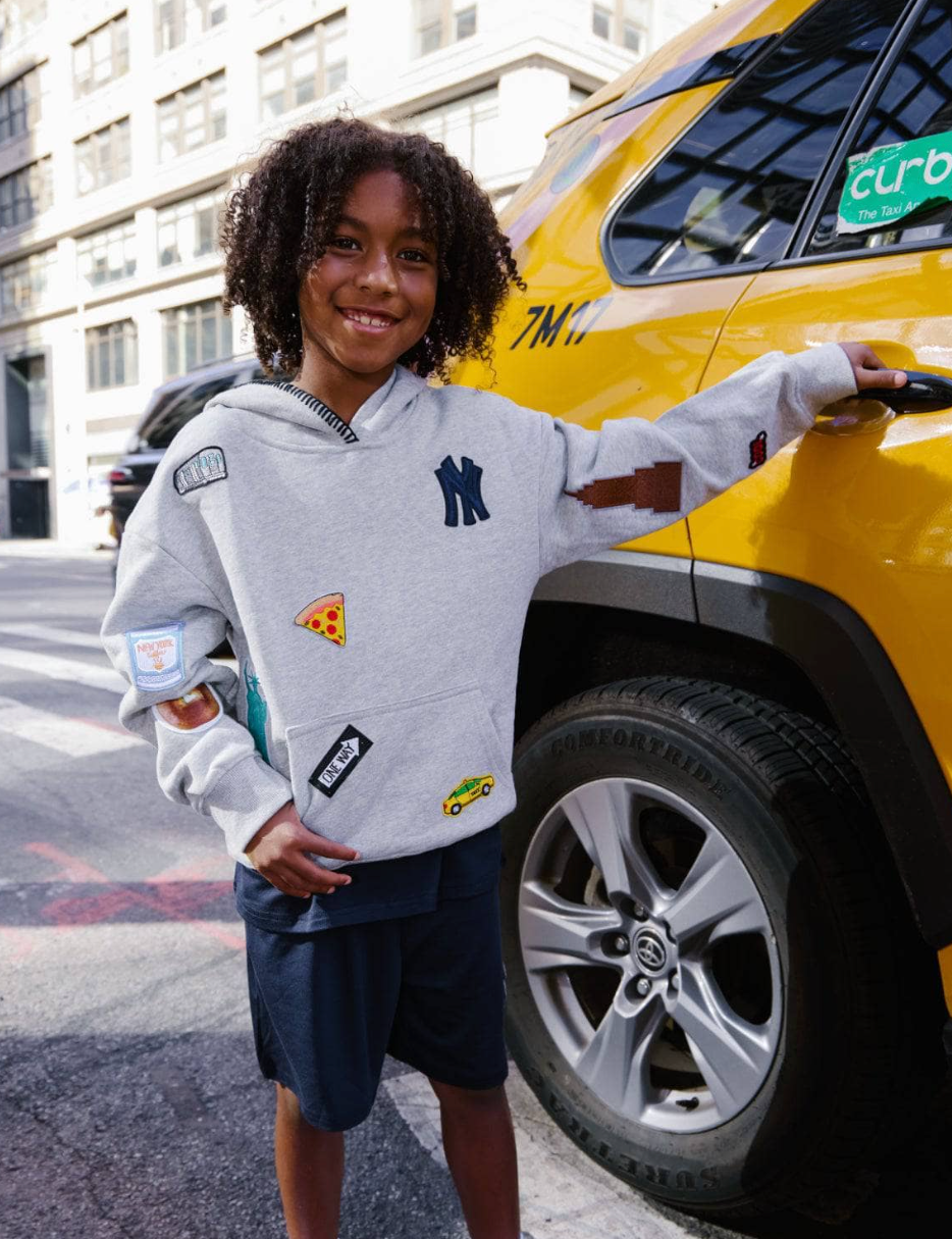 Get ready to turn heads with the Lola All About the Patch Hoodie! This playful statement piece is decked out with embroidered city-themed patches featuring everything from sports legends to iconic landmarks. Snuggle up in ultra-soft fleece-lined fabric that keeps you warm and comfy all day long. With a relaxed fit, ribbed cuffs, a cozy hood, and a kangaroo pocket, it blends style and functionality perfectly. Crafted from a premium cotton-polyester blend, it's built to last and easy to care for—just wash cold inside out and tumble dry low for continued coziness!
