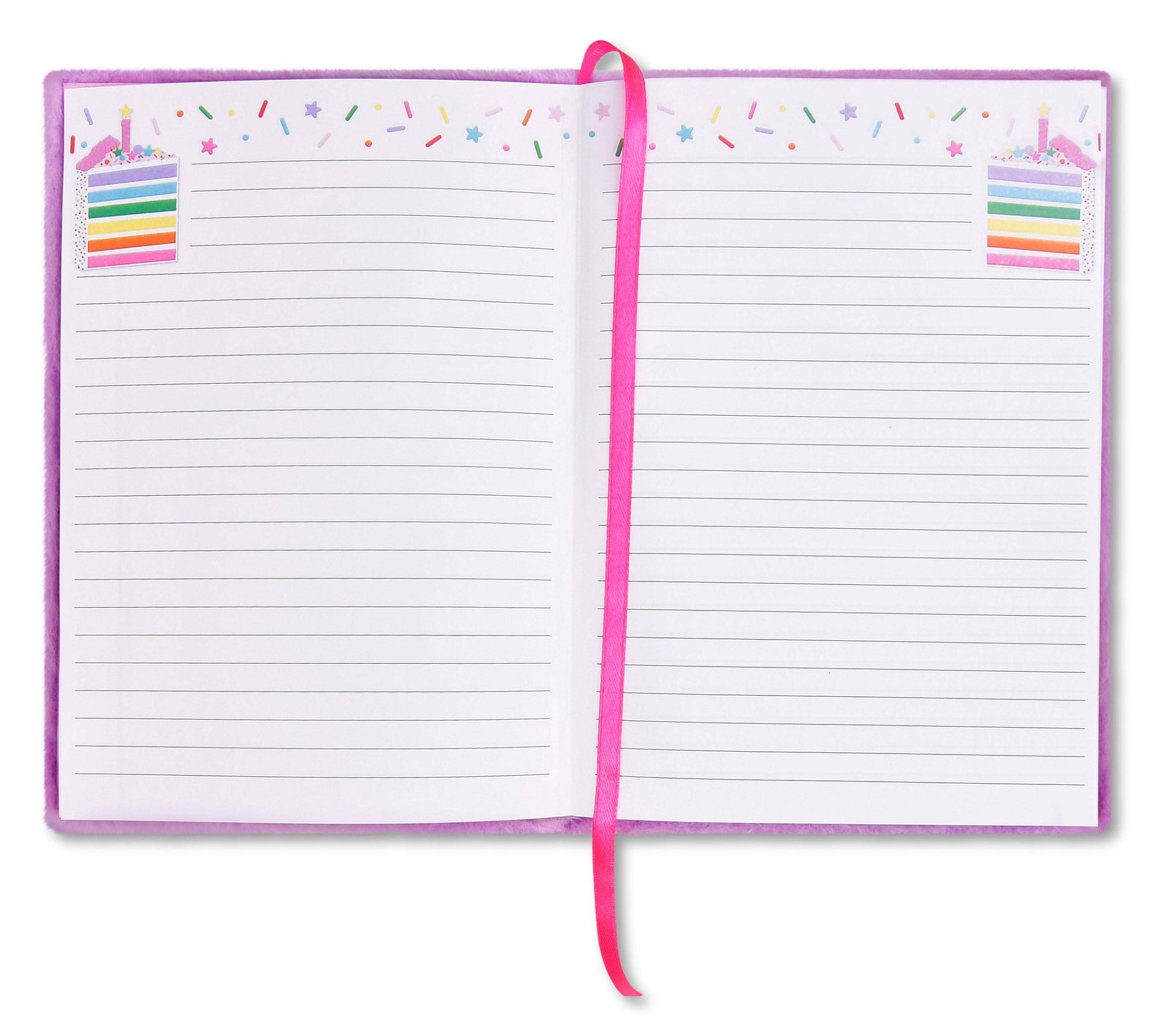 The furriest, sweetest Journal from Iscream! Warning: You won't want to put this down! The Iscream "Piece of Cake" Journal is covered in bright, touchable fur and features a cheerful embroidered slice of cake on the cover. This isn't just a notebook—it's your softest, happiest companion! The durable bookbound spine protects 160 colorful lined pages, giving you endless space for stories, notes, and secrets. It's an instant, amazing gift that brings a tactile touch of fun to any desk or backpack! Measures 6 1/4" w x 8 1/2" h