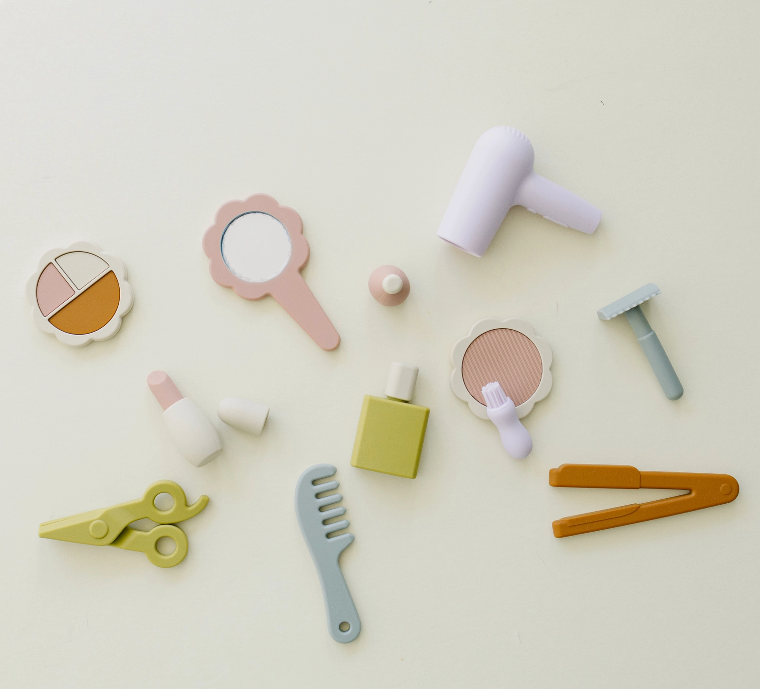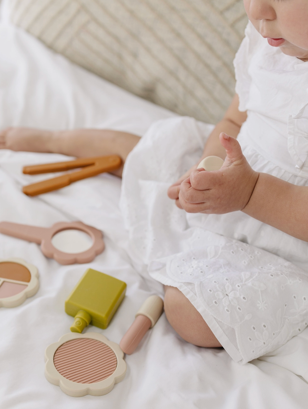 Ignite your child's creativity with our Silicone Hair & Makeup Play Set! This 12-piece, mess-free beauty kit encourages imaginative play while helping develop fine motor and social skills. Made from 100% food-grade silicone, it's safe, BPA-free, and dishwasher safe for easy cleanup. Perfectly sized for little hands and packaged in a cute cotton bag, it’s the ideal gift for kids aged 3 and up to explore fun, colorful styling adventures.