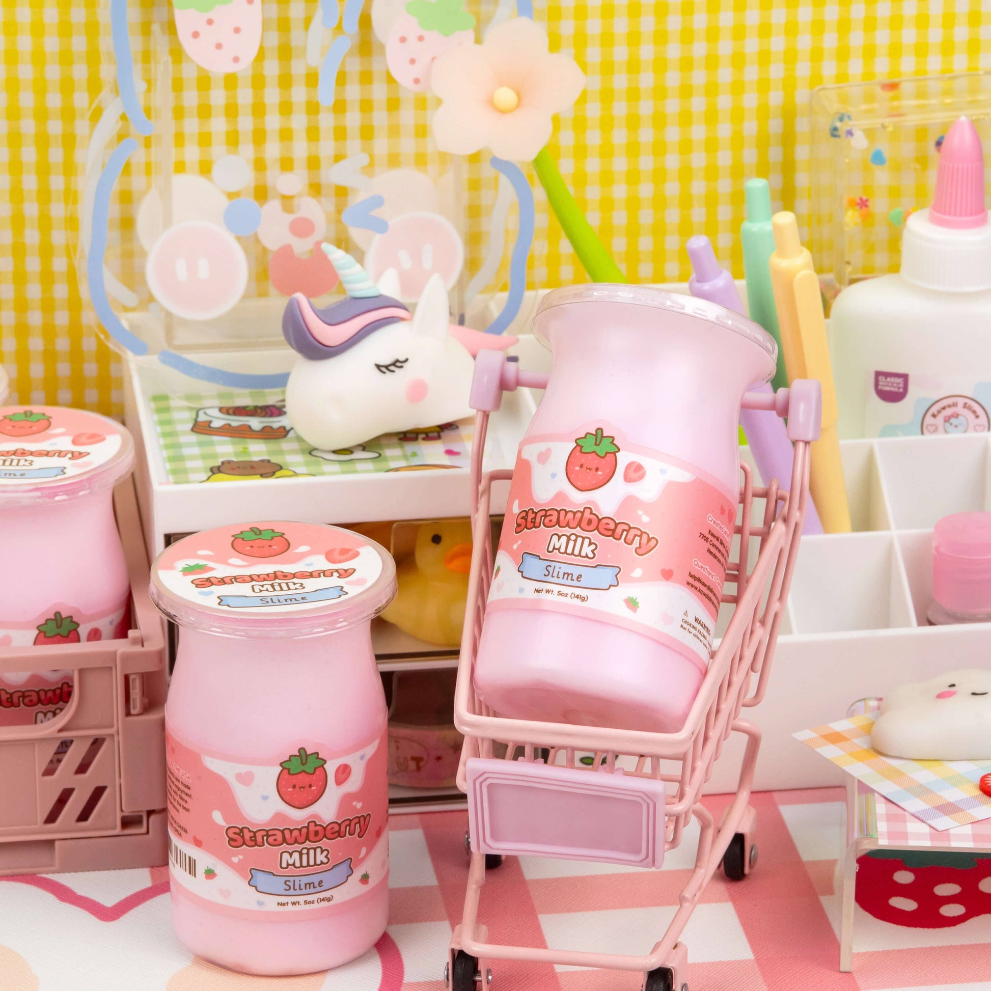 Sugar coated strawberries blended with creamy vanilla milk will surely evoke some memories from your childhood! We combined those yummy scents into our gooey, glossy, thick Slime base that is full of stretchy fun! This texture also makes wonderful bubble pops and the perfect size for a "Slime on the go". Each Strawberry Milk Slime will come inside the adorable "milk" container as shown.